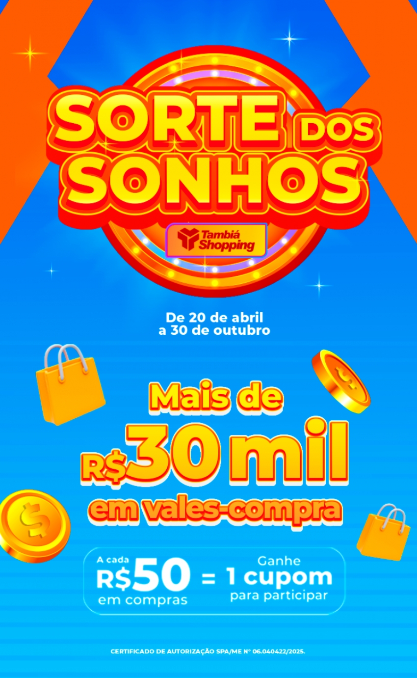 Objeto da promoção: Compras realizadas no Tambiá Shopping, com exceção dos produtos vetados pelo Art. 10º do Decreto 70951/72 sendo estes: medicamentos, armas e munições, explosivos, fogos de artifício ou de estampido, bebidas alcoólicas, fumo e seus derivados.